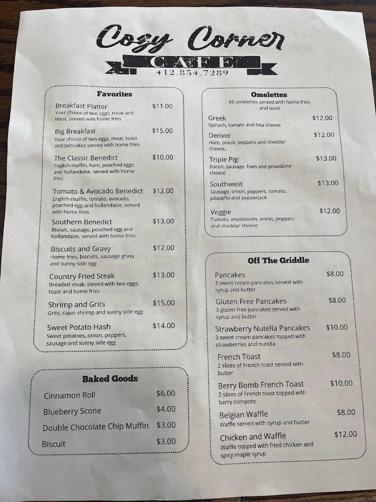 Welcome to Cozy Corner Cafe, your go-to spot in Bethel Park for delicious American cuisine! Located at 5812 Library Rd, we specialize in serving up hearty breakfasts, satisfying lunches, and comforting dinners, all in a warm, inviting atmosphere. Our menu features fan favorites like eggs Benedict, hearty breakfasts, flavorful sandwiches, and delightful cinnamon rolls. Enjoy your meal on-site, take it to go, or have it delivered straight to your door. With both indoor seating and free parking, Cozy Corner Cafe is the perfect place to relax and savor great food. Join us for a cozy dining experience today!